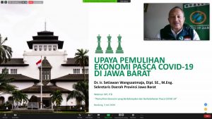 Pemaparan terakhir disampaikan oleh Dr. Ir. Setiawan Wangsaatmaja Dipl. SE., M.Eng dengan penjelasan terkait upaya pemulihan ekonomi pasca Covid-19 di Jawa Barat, penanganan pandemik di Jawa Barat, nilai yang dibangun Jawa Barat untuk melawan pandemik, dampak ekonomi Jawa Barat dan program pemulihannya.