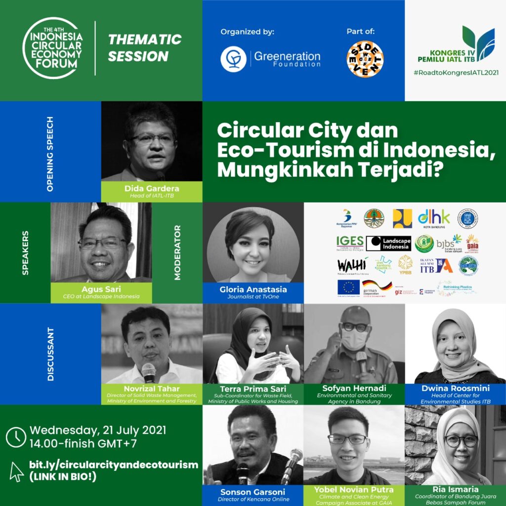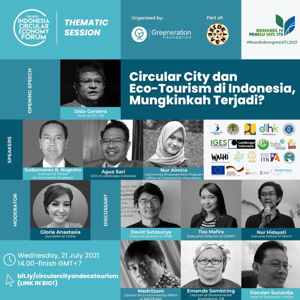 IATL ITB bersama dengan Rethinking Plastics telah mempersiapkan “Circular City dan Eco-tourism di Indonesia, Mungkinkah Terjadi?” untuk menjawab pertanyaan-pertanyaan tersebut. Jangan sampai ketinggalan karena akan ada diskusi langsung antara para pakar dan alumni TL ITB yang aktif di pemerintah pusat, pemerintah daerah, praktisi, akademisi, dan NGO.
